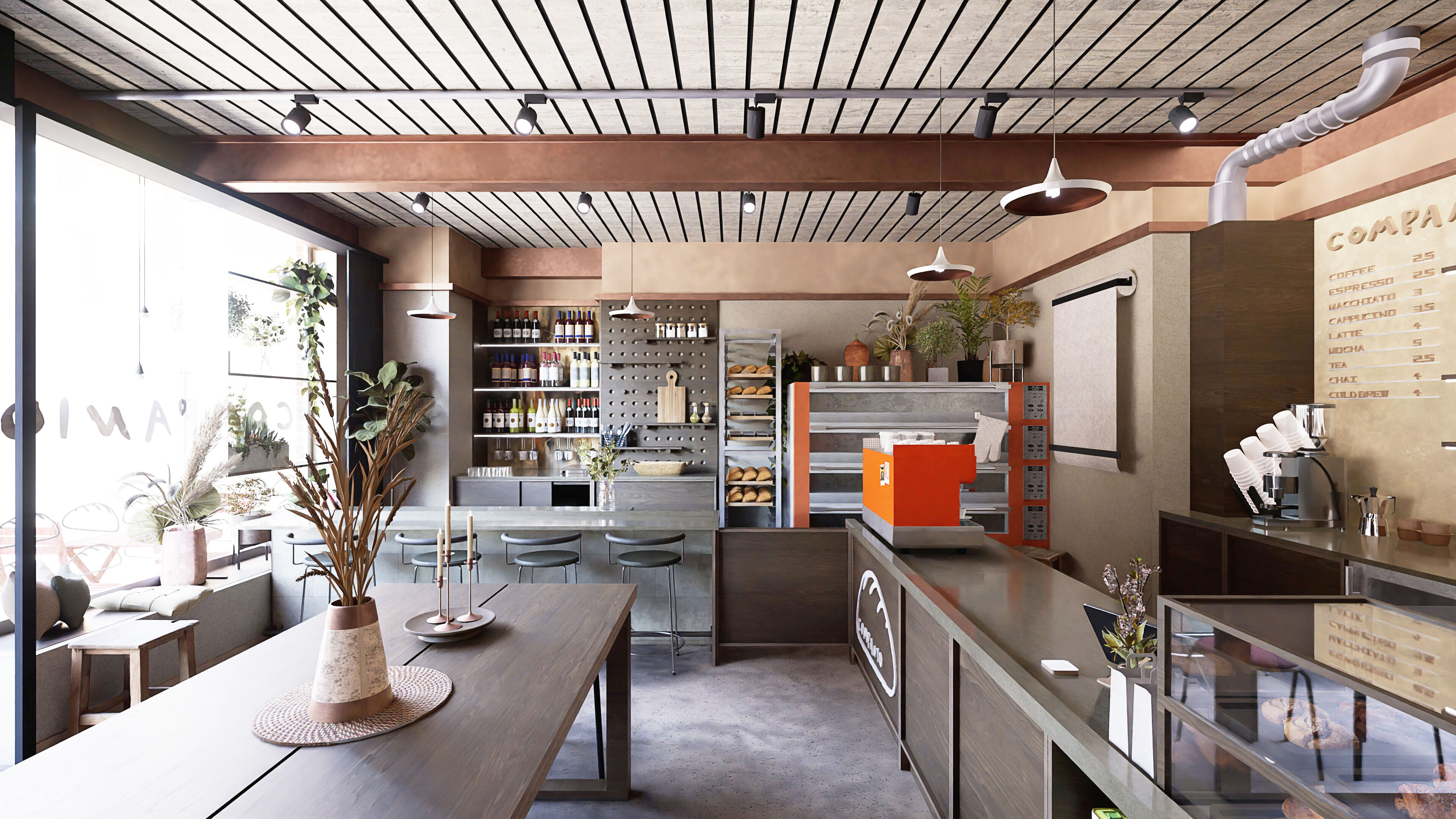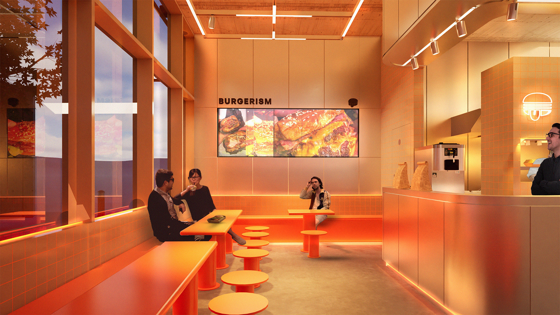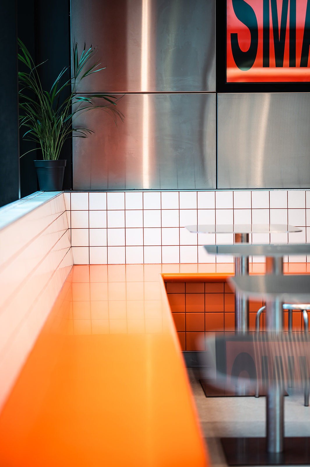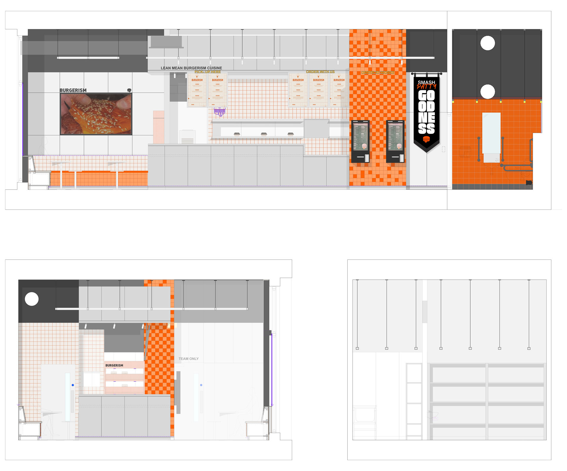 The layout establishes a clear division between public and private areas, ensuring both functionality and flow. Upon entry, the self-service kiosk and POS counter immediately guide customers through the ordering process, leading naturally to the seating area at the rear of the unit for a relaxed dine in experience.