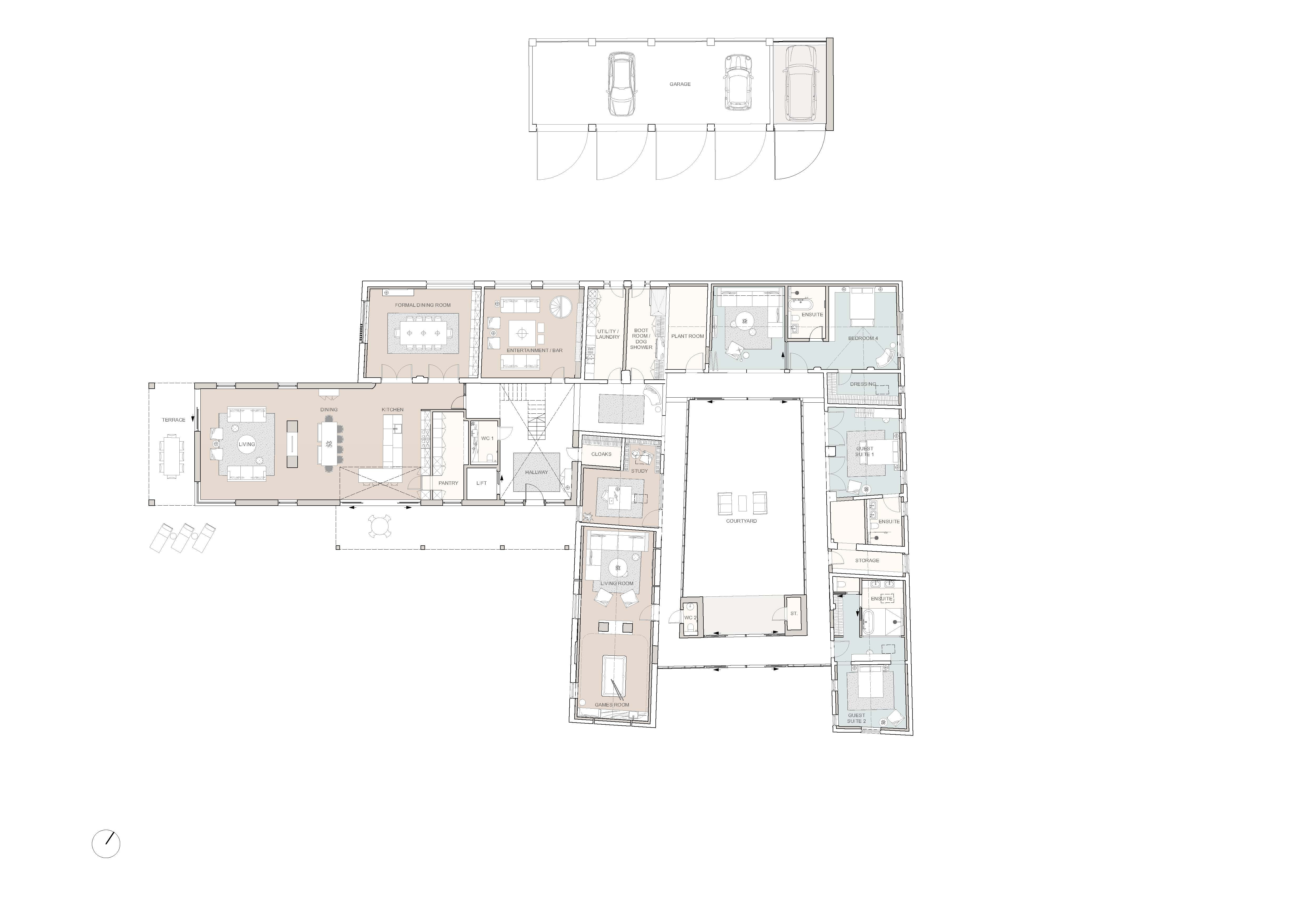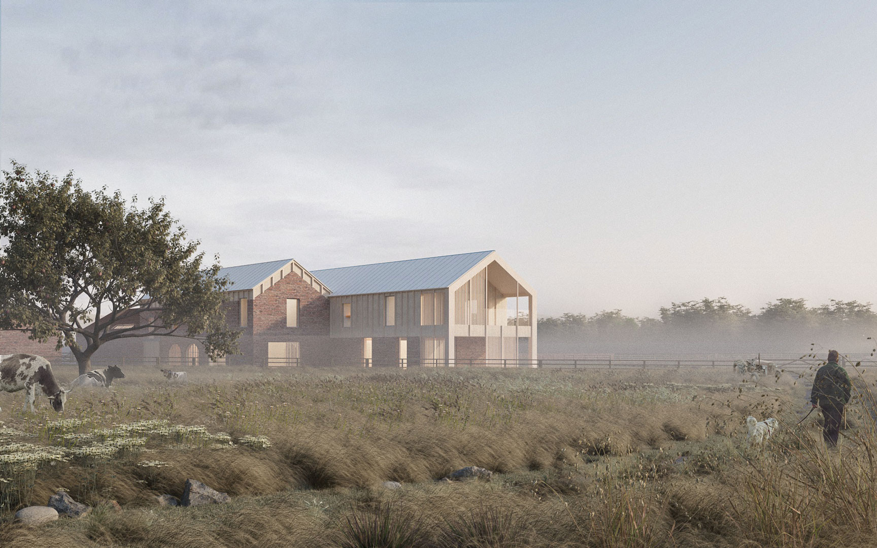 The programme is to fully restore the brick barns and stables, both internally and externally, and to add a contemporary extension to the south-west including an open plan kitchen/living space and the principal suite. The extension frames the views of the surrounding landscape, brings natural light deep into the building, and will increase the home to 9000sqft.